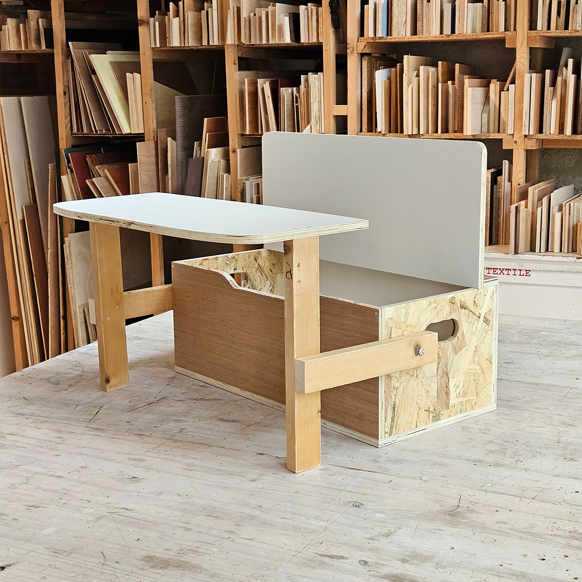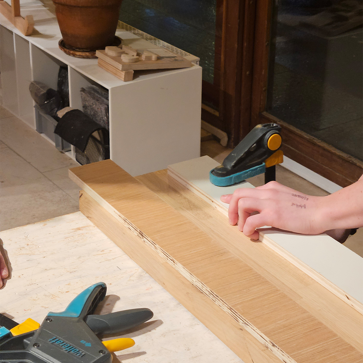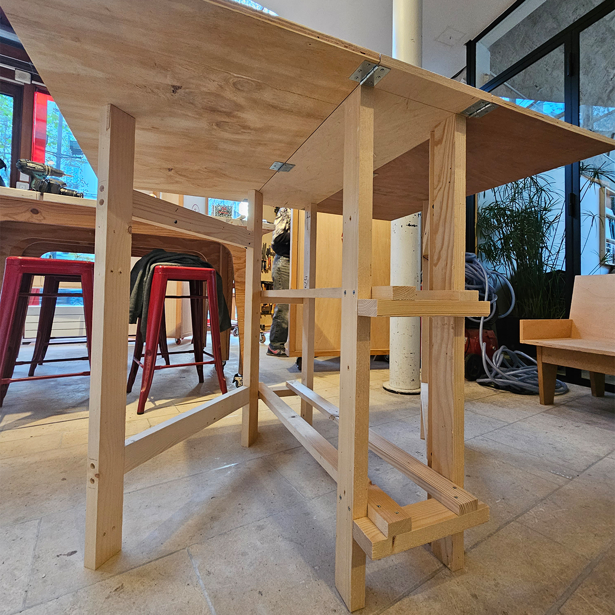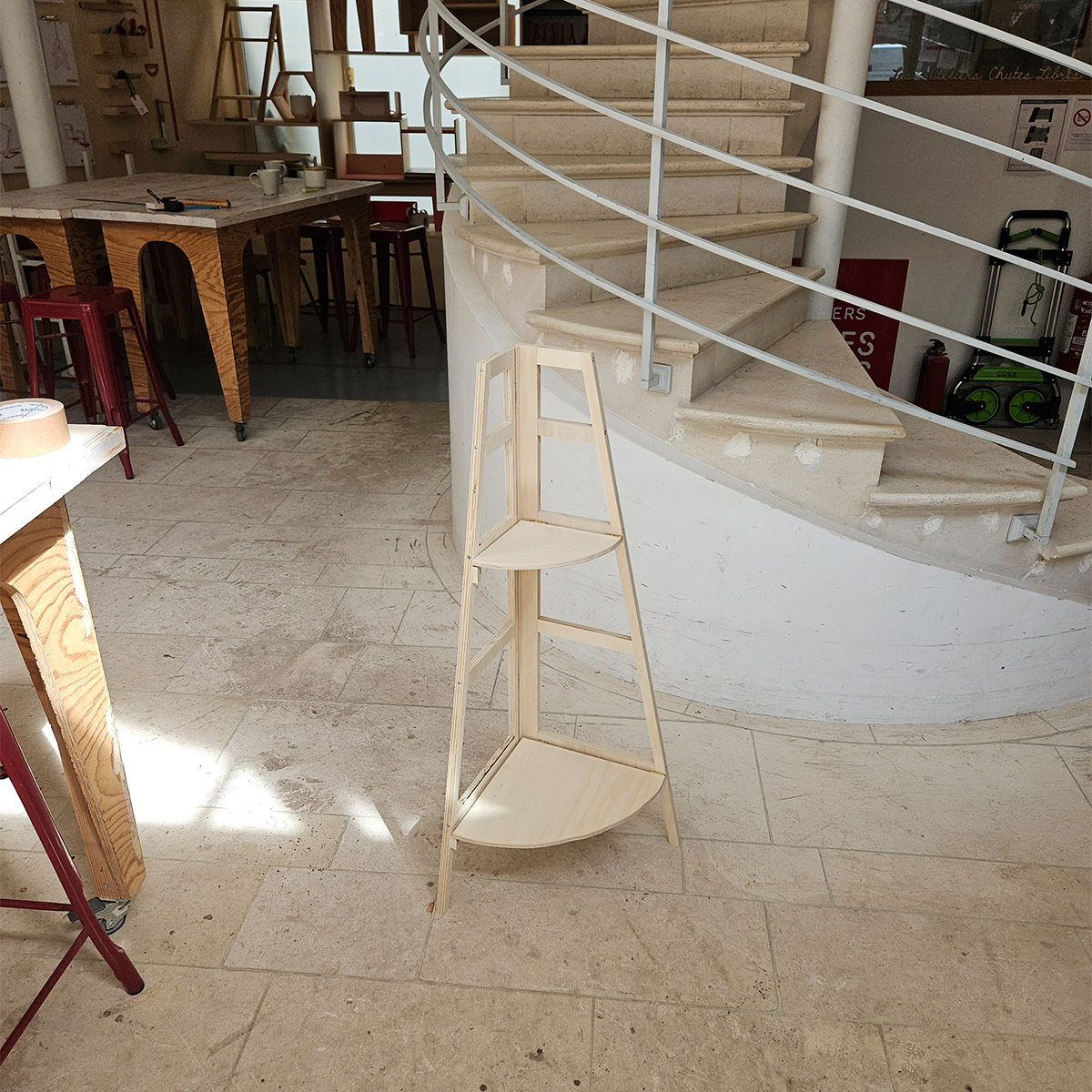 En tant qu’encadrant, j’accompagne les participants dans le dessin, le choix des bois, l’utilisation des machines et l’assemblage sur le temps d’un atelier. Nous les sensibilisons également au réemploi du bois