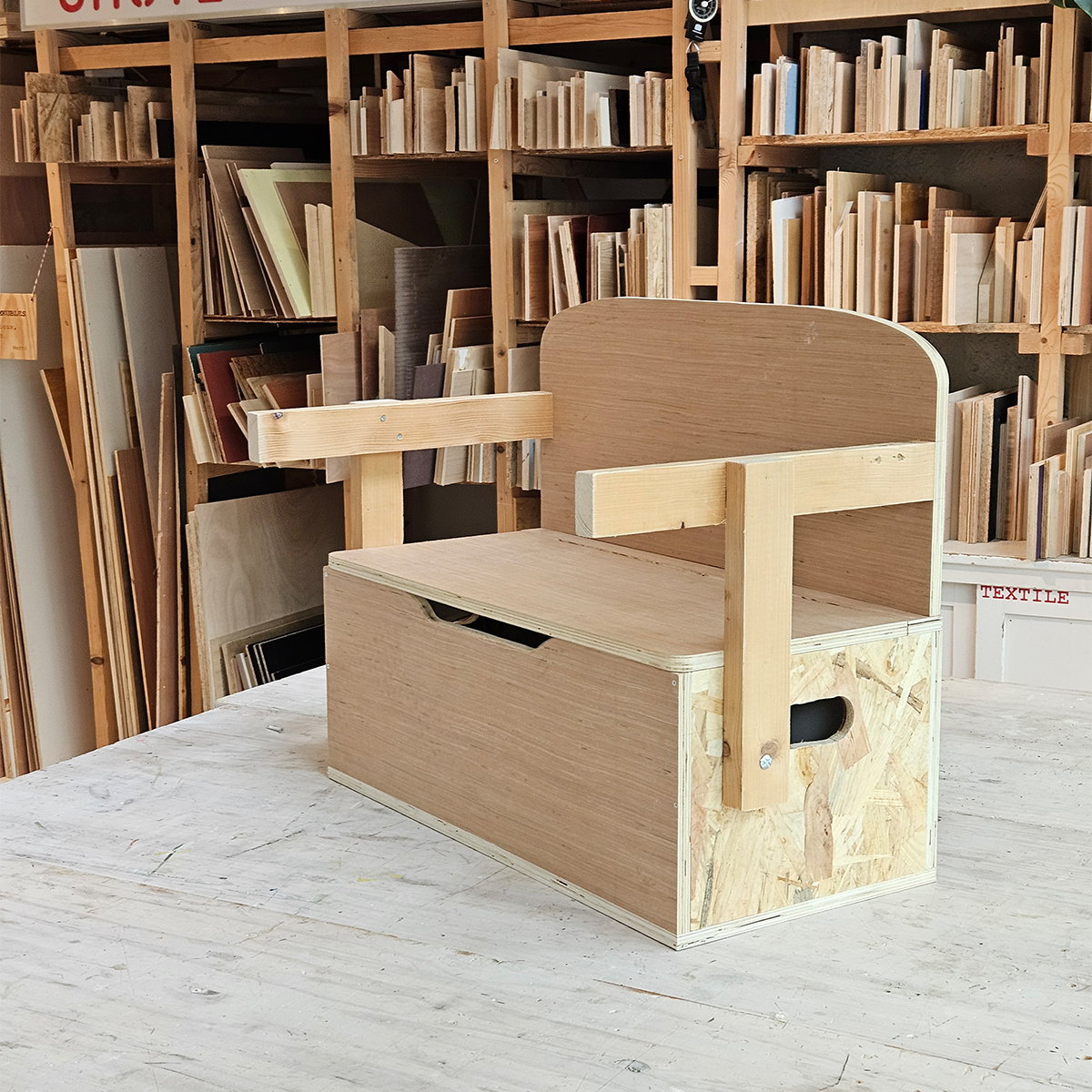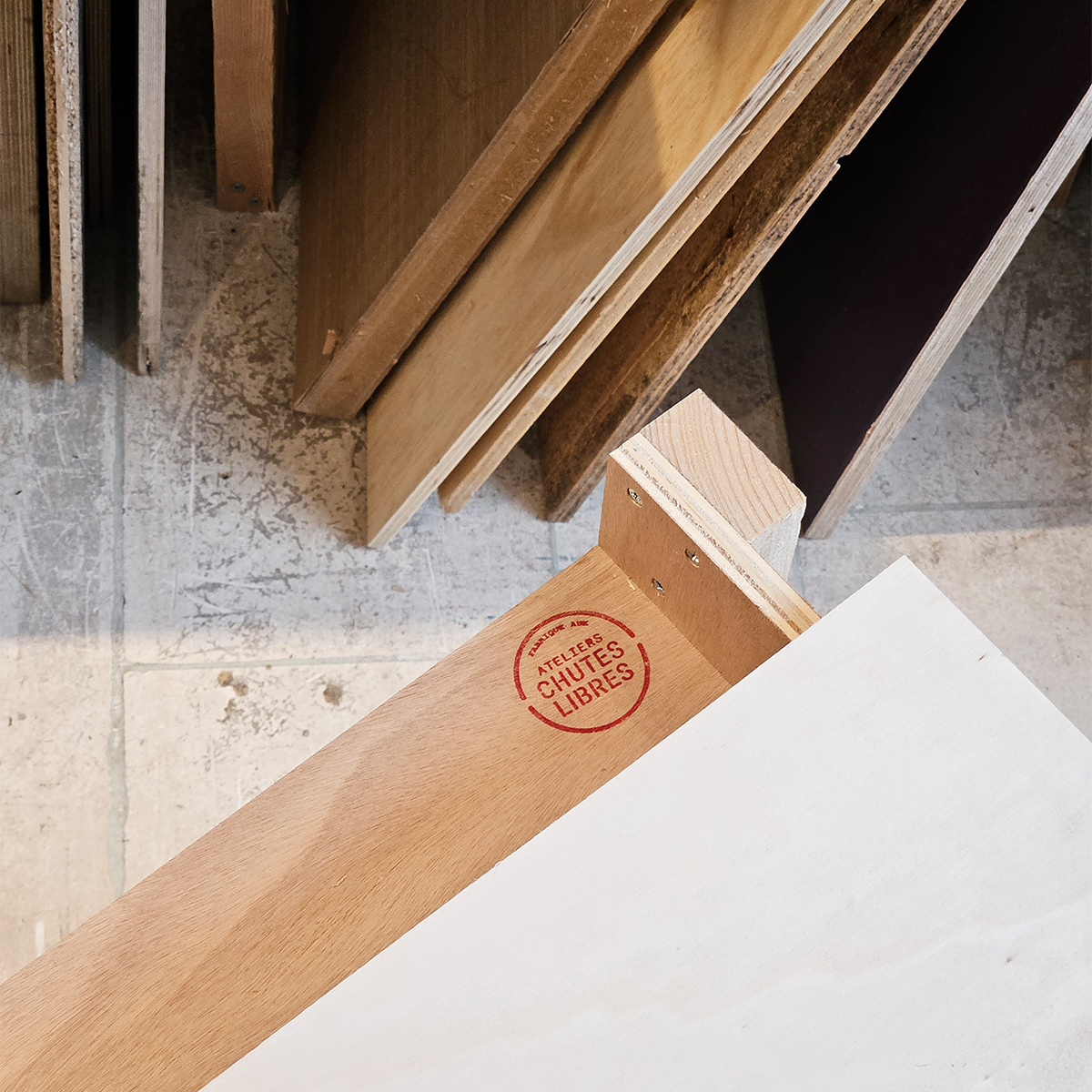 Les Ateliers Chutes Libres proposent au grand public de venir bricoler eux-mêmes des mobiliers avec du bois de réemploi. Nous récupérons du bois auprès de différentes entreprises (professionnels du bois, salons, musées, événementiels, … ).