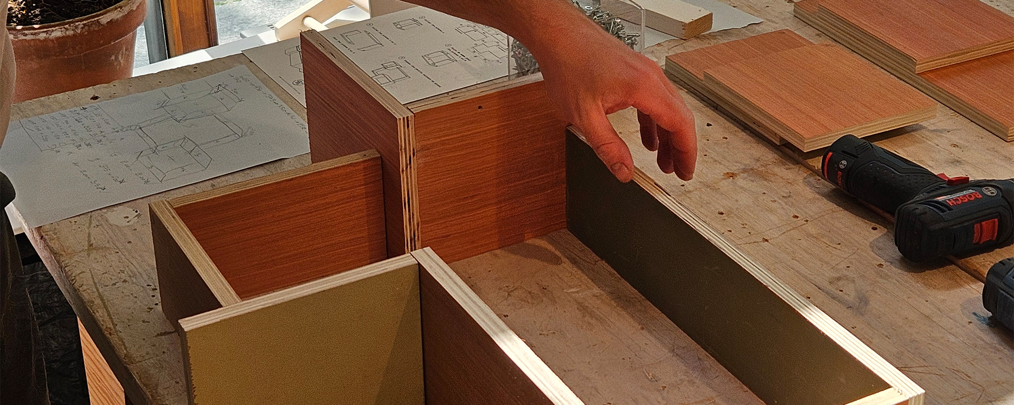 Les participants viennent avec leurs esquisses et nous prenons le temps de les redessiner selon leurs besoins et selon le bois disponible.