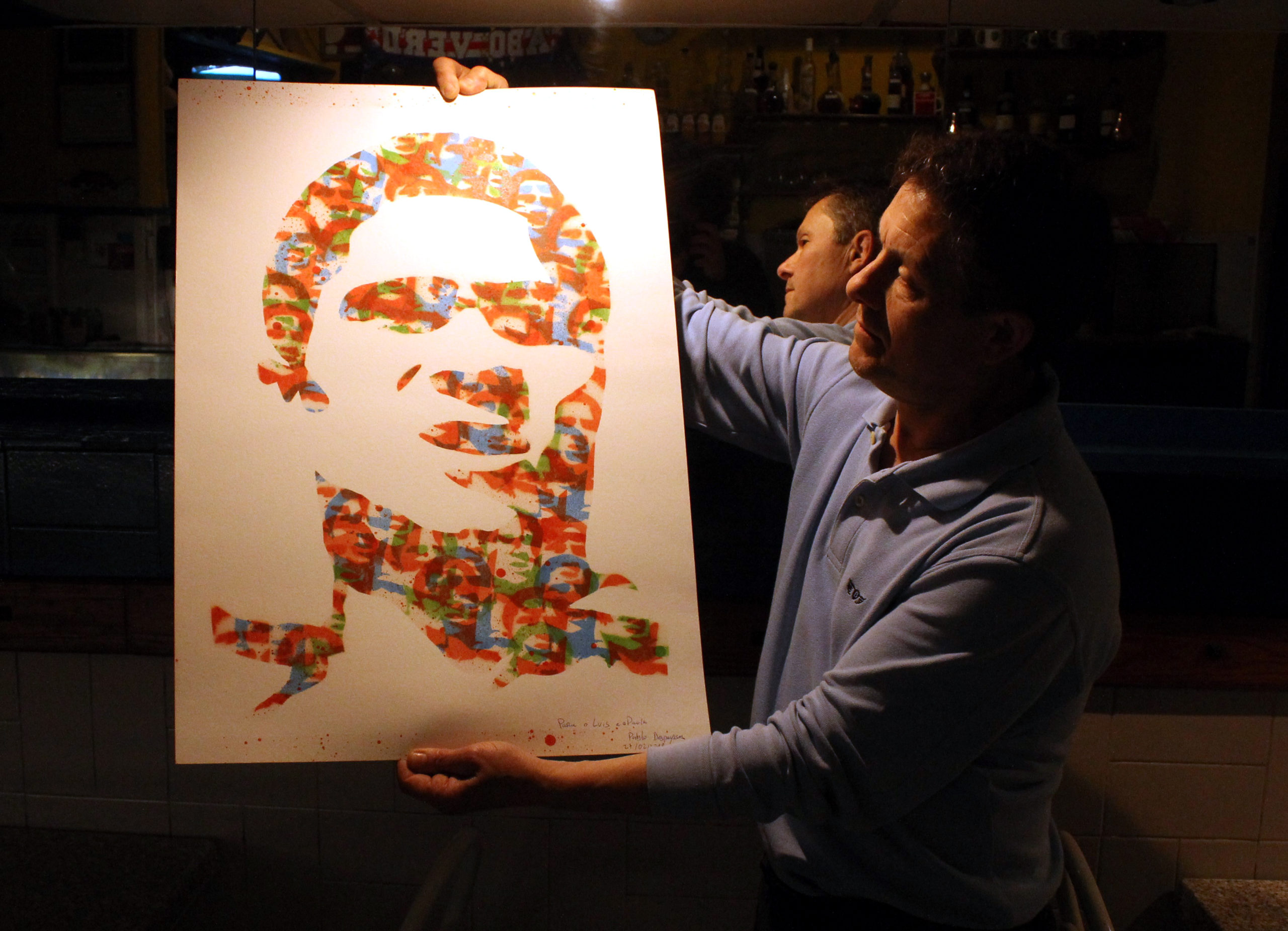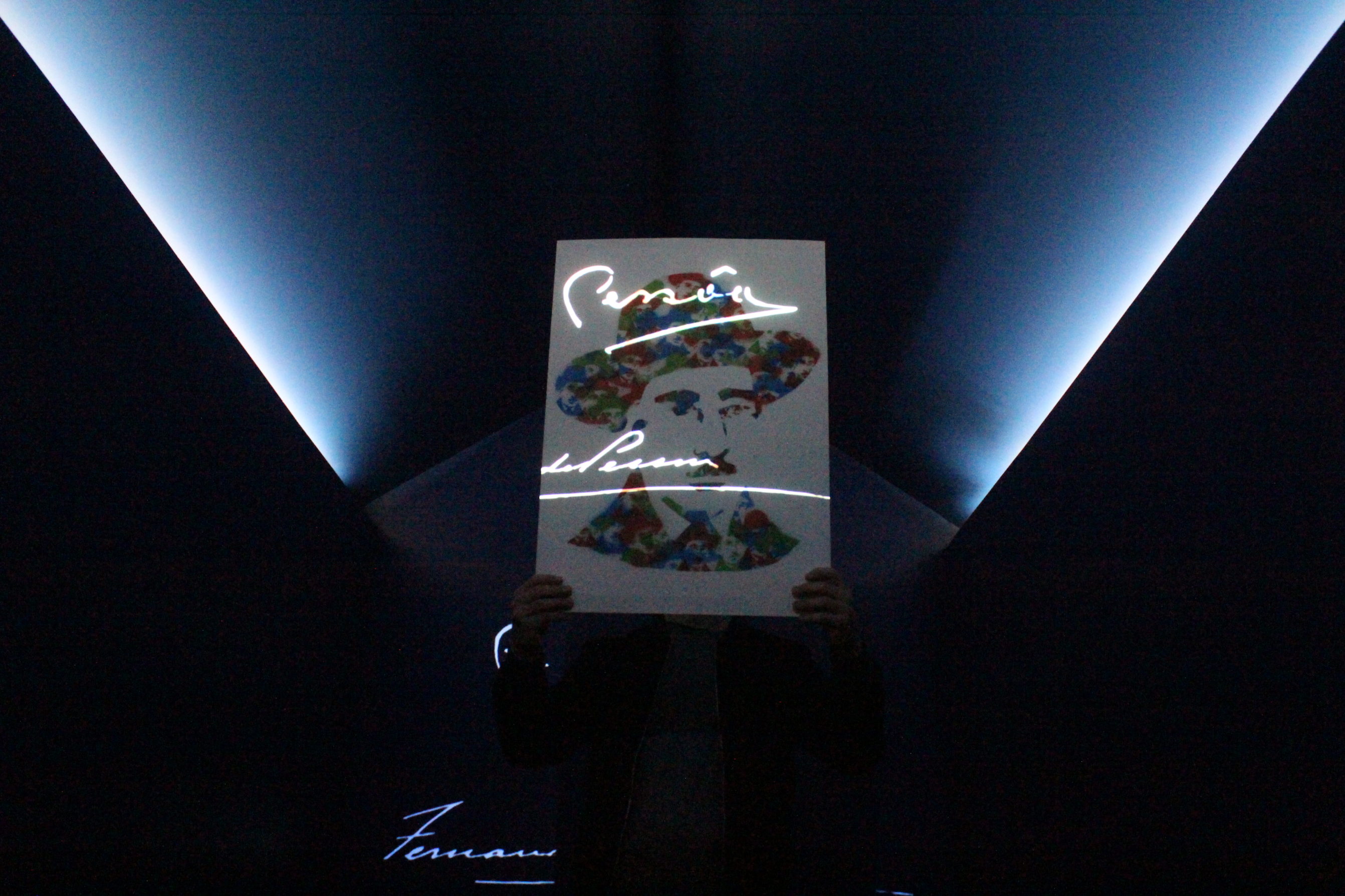 pochoirs #pratique-personnelle #peinture #arts-plaqtiques #communication #portraitdepuis 2018 Pratique personnelle du pochoir, principalement autour des portrait. La première série est autour de deux figures iconiques de la société portugaise:– Fernando Pessoa– Eusébio Portrait d’Eusébio: footballeur portugais et icône historique de l’équipe de Benfica à Lisbonne. Le portrait à été offert à Luis, tenancier du café O Luis, Rua da Arrabida à Lisbonne et fervent supporter du Benfica. Le portrait à été offert à la Casa Fernando Pessoa située à Lisbonne. Portrait de Fernando Pessoa: philosophe et poète portugais du début du XXème siècle, il est un des précurseurs du modernisme au Portugal.